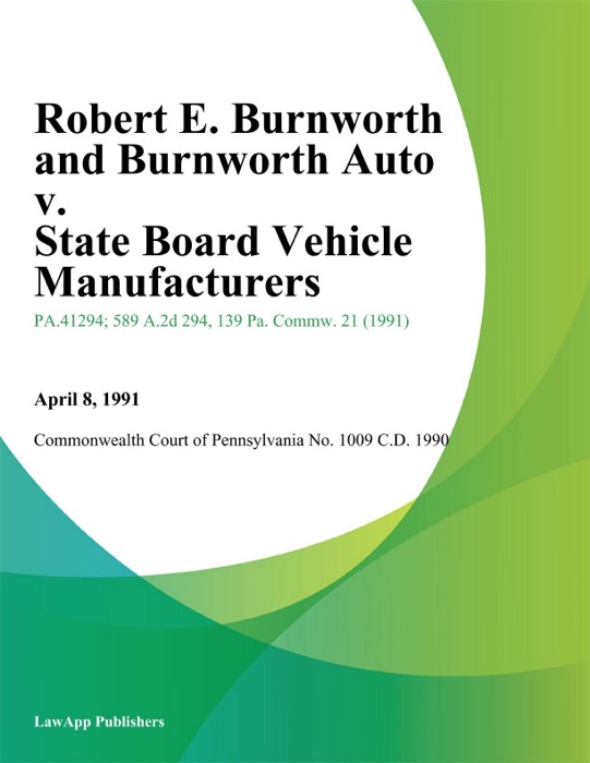 - Title: Robert E. Burnworth and Burnworth Auto v. State Board Vehicle Manufacturers